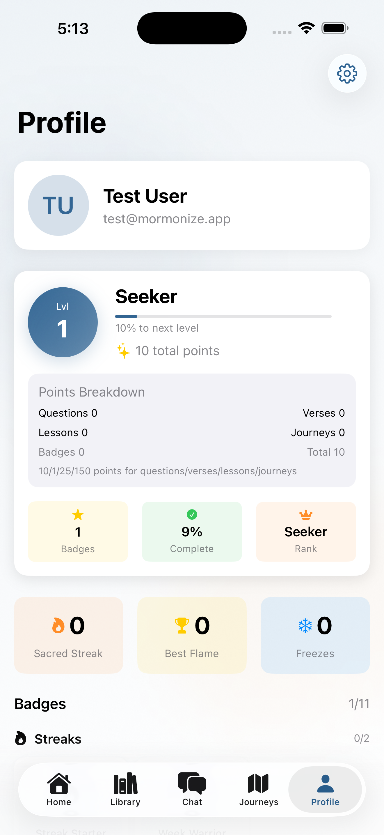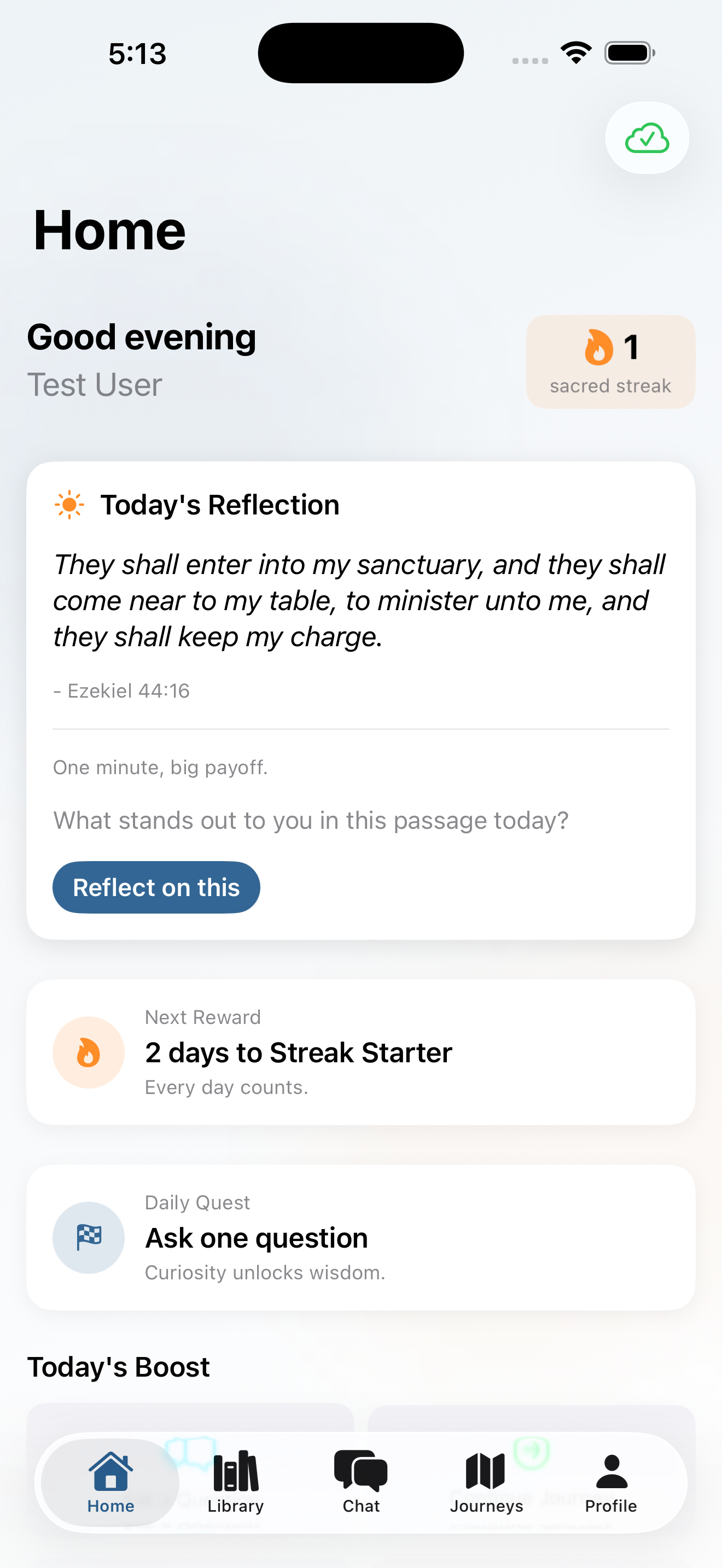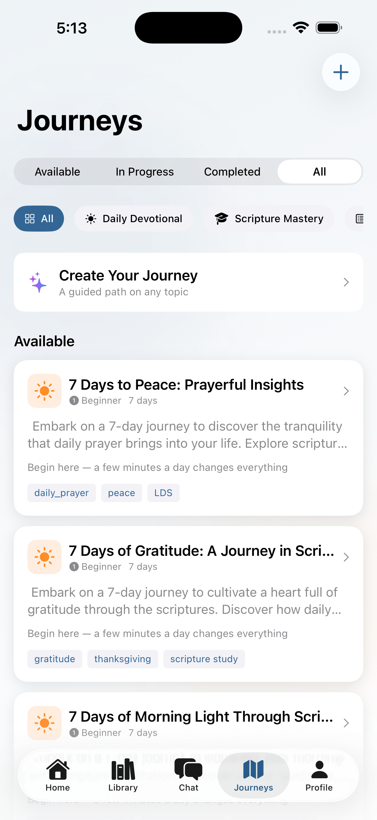 Designed structured study programs that walk users through topics, themes, and books over time — with progress tracking, streaks, and badges that reward consistent engagement without gamifying the experience into something hollow.
